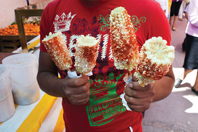 corn with mayonnaise, lime and chili powder (it's the most amazing food known to mankind)