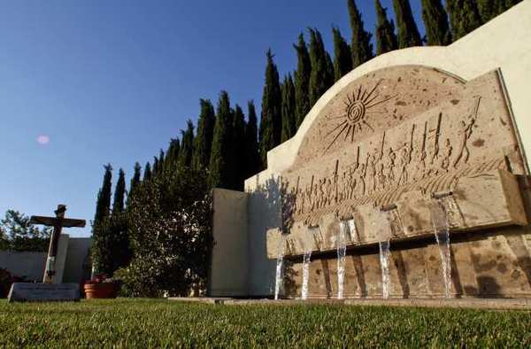 KEENE, CA-MAY 12, 2011: A sculpture depicting a farmworker march is located next to the gravesite of farm worker leader Cesar Chavez at the National Chavez Center at La Paz in Keene, Ca., on May 12, 2011. Chavez passed away in 1993. (Mel Melcon/Los Angeles Times)