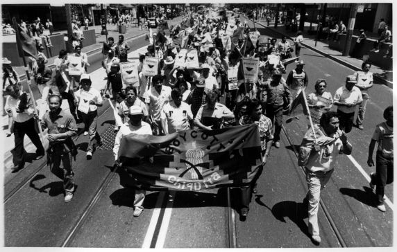 with McGovern for President supporters ("Grassroot McGoverners" in the language of the time) marching from the Civic Center to Union Square in San Francisco against Proposition 22 which forbade secondary boycotts.